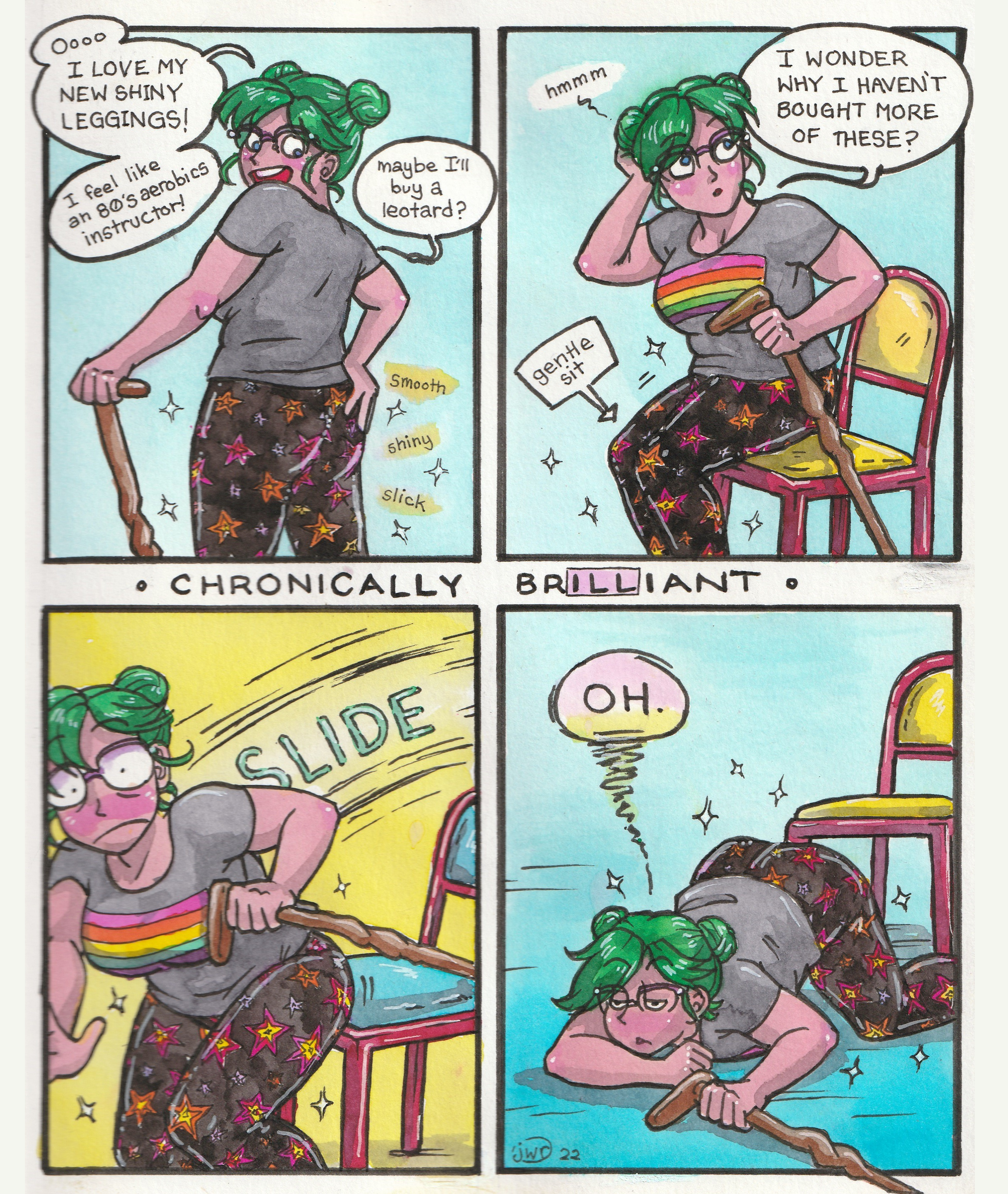 Chronically Brilliant, "Slide", Watercolor and Pen and Ink, 2022